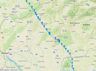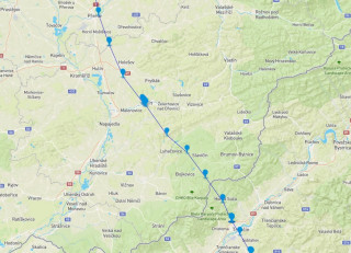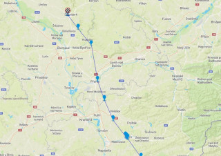 Na Slovensku již svůj let začal GPS holub korigovat směrem k domovu. Směr Nová Baňa, Partizánske, Bánovce nad Bebravou, Trenčianske Teplice. Po několika kilometrech překonal hranici do České republiky. |